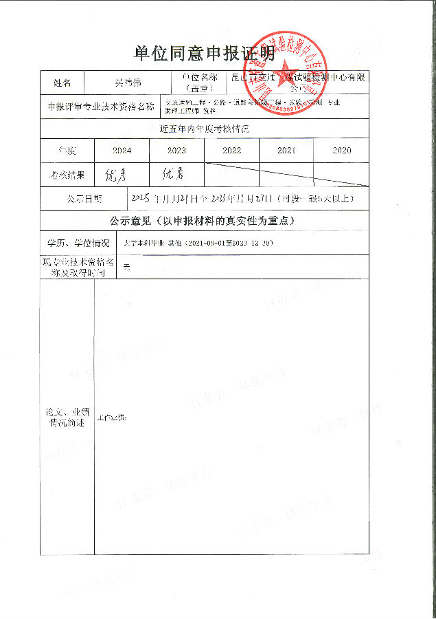 经过个人申请,职能机构审核,单位研究决定等工作程序,拟同意王宇超、吴祎伟同志申报交通运输工程‧公路‧道路与桥隧工程‧试验、检测专业助理工程师。